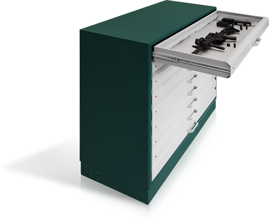 Waffen, Munition und andere Sicherheitsausrüstung sicher und geschützt im WDC 8 Waffenschrank, aufbewahren.